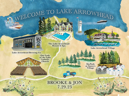 Our watercolor wedding maps provide a wonderful way to personalize your suite further. You can highlight the location of your wedding ceremony, reception venue, local landmarks, or favorite spots!